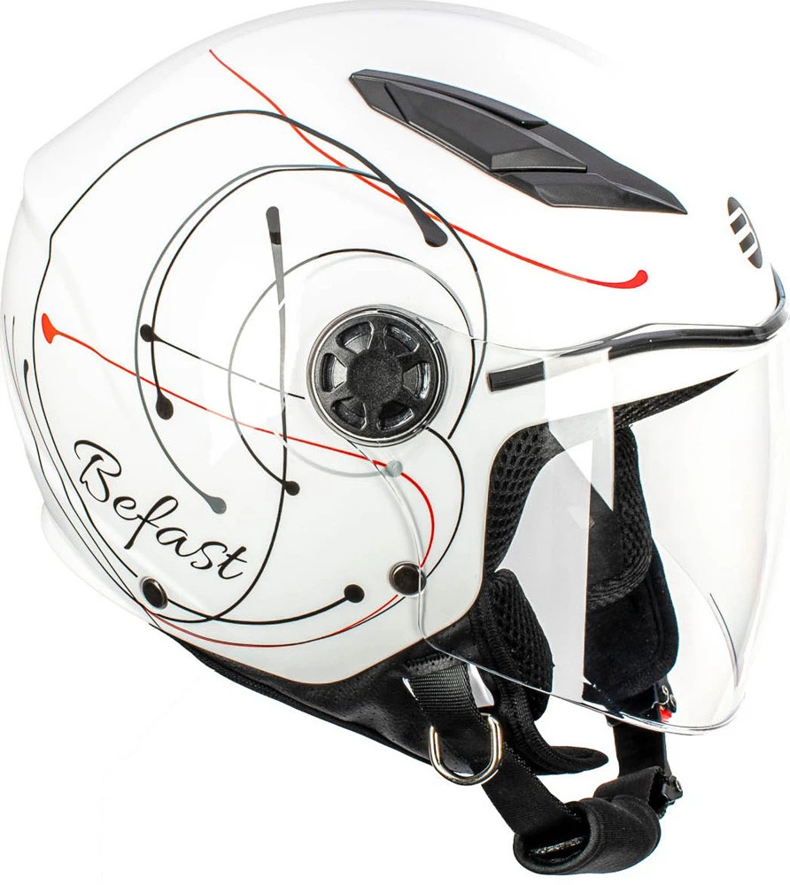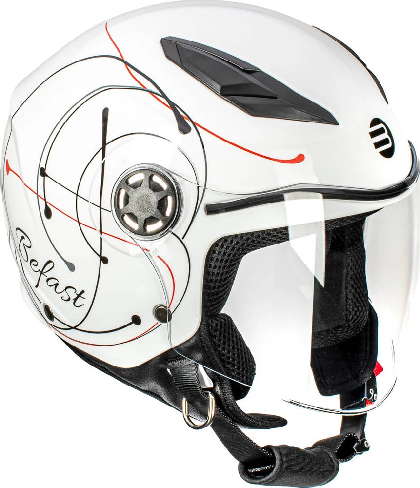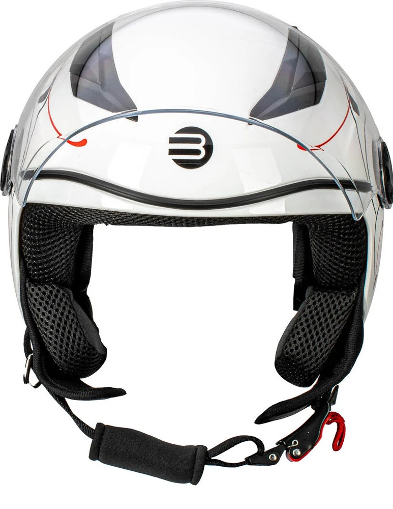 Descrizione prodotto Casco jet bambino Befast Flipper Linear Bianco Rosso Nero