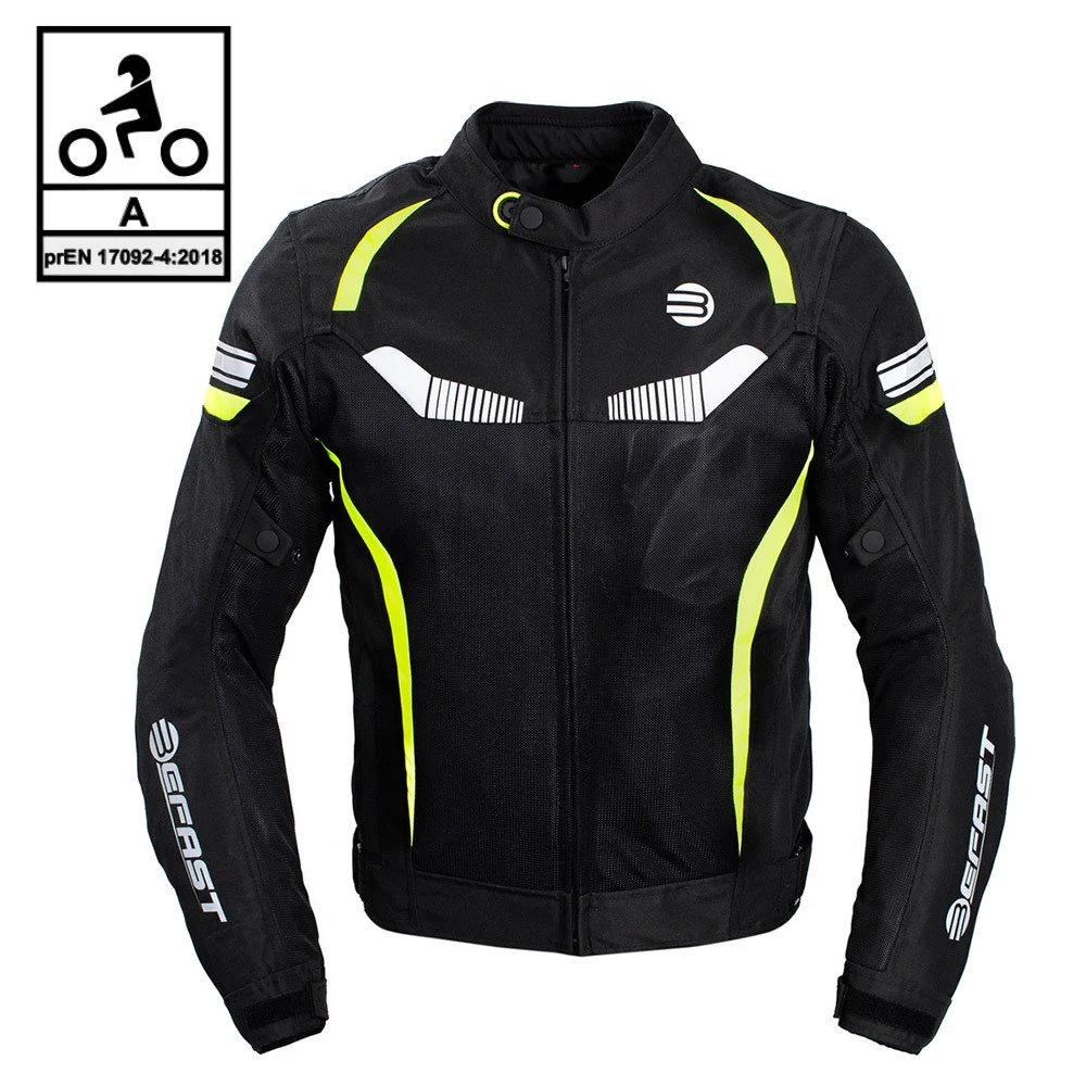 La giacca Befast Airtech è inoltre un capo Certificato secondo la normativa prEN 17092-4:2018 di livello A in grado cioè di soddisfare parametri di resistenza agli urti, allo strappo e all’abrasione, e non solo dispone anche di protezioni CE Certificate EN 1621-1:2012 di Livello 1 su spalle e gomiti e predisposizione per l’inserimento di un paraschiena certificato da acquistare separatamente.