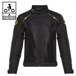 Capo Certificato secondo la normativa prEN 17092-4:2018 di livello A in grado cioè di soddisfare parametri di resistenza agli urti, allo strappo e all’abrasione, e non solo dispone anche di protezioni CE Certificate EN 1621-1:2012 di Livello 1 su spalle e gomiti e predisposizione per l’inserimento di un paraschiena certificato da acquistare separatamente.