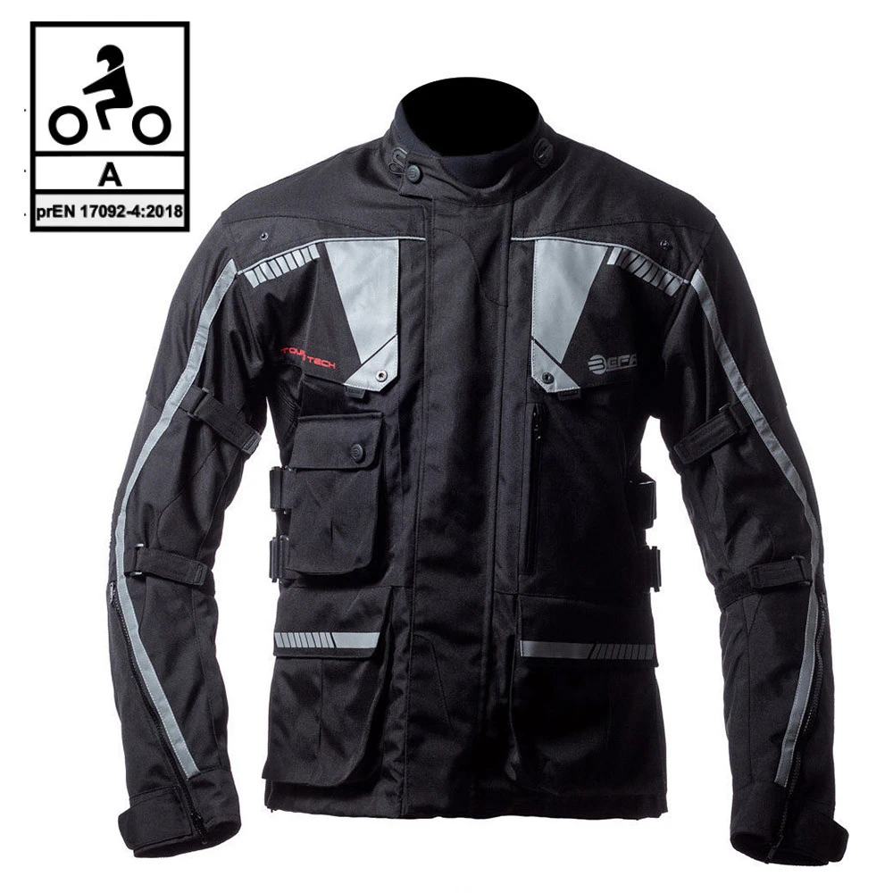 La Touring Tech CE du Befast è una Giacca Certificata in grado cioè di soddisfare i requisiti imposti dalla normativa prEN 17092-4:2018 che regola i DPI (dispositivi di protezione personale) e prevede una serie di parametri di resistenza agli urti, allo strappo e all’abrasione atti a valutare il grado di sicurezza di un capo. Non solo rispetta gli standard di sicurezza conformi alla normativa sopracitata di livello A, la Touring Tech dispone anche di protezioni CE EN 1621-1:2012 Level 1 su spalle e gomiti estraibili e predisposizione per l’inserimento di un paraschiena certificata da acquistare separatamente. Ma non è tutto, offre anche un ottimo Rapporto Qualità Prezzo, come tutti i prodotti del marchio Befast che grazie alla distribuzione esclusiva e diretta da parte di Motoabbigliamento.it, sia On Line che nei numerosi Punti Vendita di Proprietà sul territorio italiano, riesce ad abbattere gran parte dei costi di distribuzione, garantendo così un’ottima qualità ad un prezzo vantaggioso rispetto alle effettive caratteristiche tecniche del prodotto.