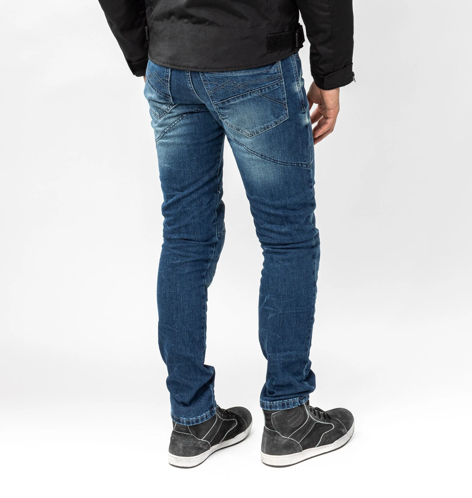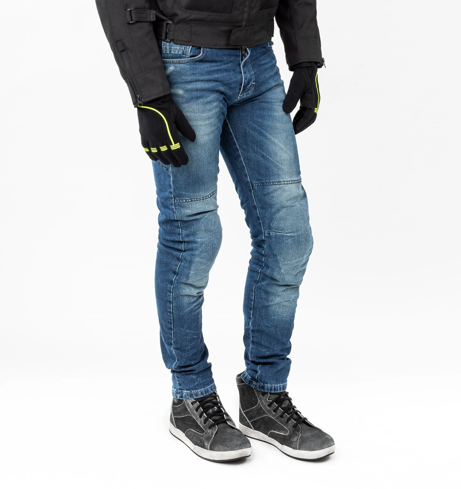 Linee semplici e lavaggio classico, per un jeans perfettamente in grado di farti sentire sempre a tuo agio in ogni contesto, ma soprattutto studiati e progettati per essere adeguatamente resistenti, protettivi e confortevoli durante i tuoi giri in moto. Dispongono di rinforzi in Cotone per un incremento della resistenza all’abrasione.