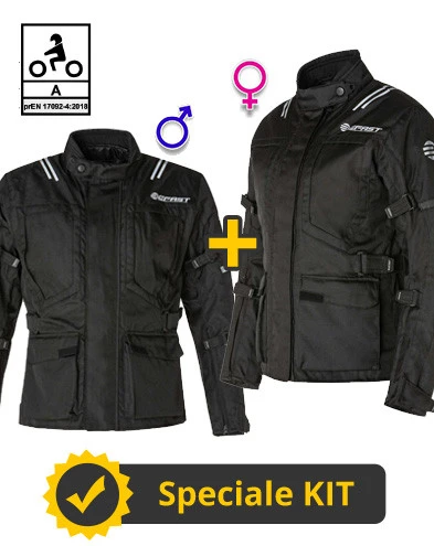 Descrizione prodotto Kit coppia Bolt CE 3 strati Nero – Giacca moto certificata Befast Uomo + Donna