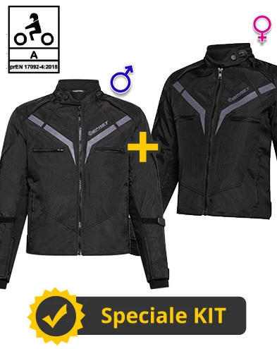 Descrizione prodotto Kit Coppia Gamma CE Nero – Giacca moto Certificata Befast uomo + donna