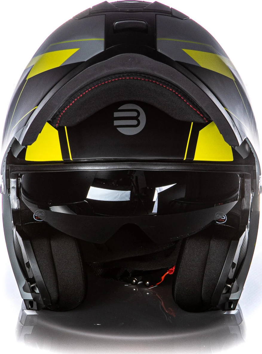 Compatto e confortevole il Tank di Befast dispone di visiera chiara antigraffio con predisposizione per Pinlock, e occhialino parasole integrato. La doppia omologazione ti permette di usarlo comodamente sia in città che in viaggio sia in modalità aperta, che con mentoniera abbassata. Gli interni sono removibili e progettati per essere compatibili con i sistemi bluetooth e per offrire il massimo confort anche a chi porta gli occhiali.