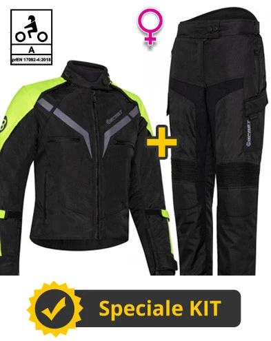 Descrizione prodotto Kit Gamma Lady CE Nero Giallo – Giacca moto donna certificata Befast + Pantaloni moto donna certificati Befast