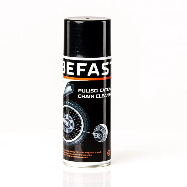 Pulitore catena Befast specificatamente progettato per la pulizia ottimale di catene, freni a disco e a tamburo, frizioni e parti di trasmissione.