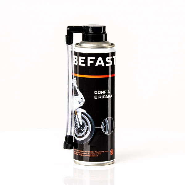 Il Gonfia e Ripara di Befast è pronto all’uso e vi permetterà di ripartire in pochi istanti in caso di foratura, Viaggiate in moto senza pensieri con il Gonfia e Ripara di Befast che grazie al suo semplice utilizzo vi permetterà di riparare il vostro pneumatico in un batter d’occhio!