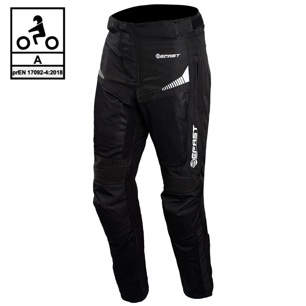 I pantaloni moto Befast Airtech sono un capo Certificato secondo la normativa prEN 17092-4:2018 di livello A in grado cioè di soddisfare parametri di resistenza agli urti, allo strappo e all’abrasione, e non solo dispongono anche di protezioni Certificate CE EN 1621-1:2012 di Livello 1 sulle ginocchia e predisposizione per protezioni sui fianchi certificate da acquistare separatamente.