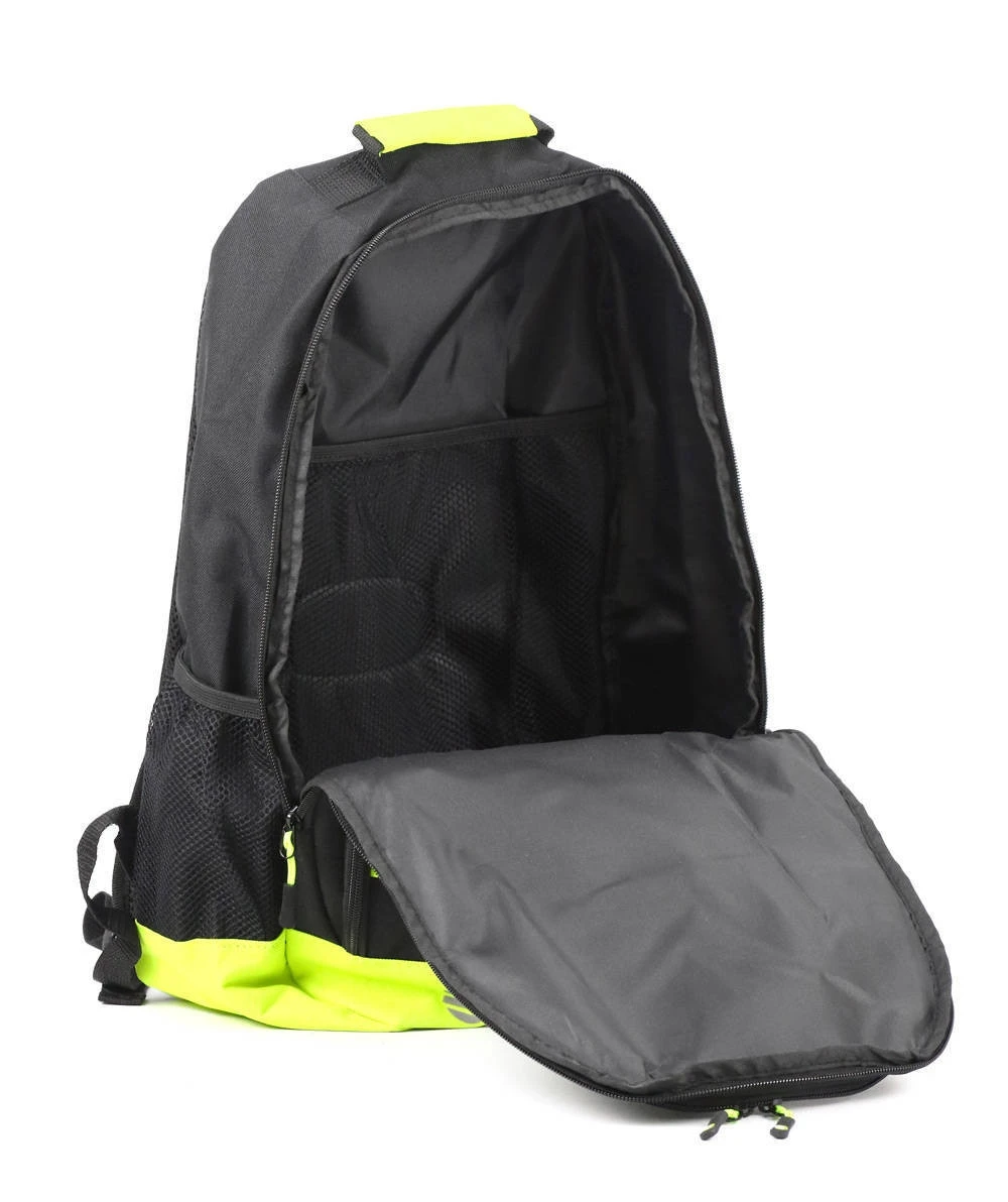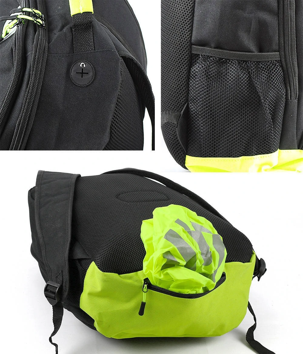 Dispone di doppio scompartimento, con zip a doppio cursore, per una maggiore resistenza e praticità di utilizzo. L’elastico esterno porta oggetti incrementa il livello di comodità e praticità dello zaino, mentre le bretelle con ginghie regolabili risultano estremamente confortevoli e resistenti, per offrirti sempre una guida comoda e senza fastidi. Il confort è incrementato dal retro imbottito in spugna e mesh, e dalla presenza di zip con tiranti per facilitarne l’utilizzo anche con indosso i guanti da moto. Gli inserti in materiale catarifrangente donano allo zaino un look particolarmente sportivo ed accattivante, incrementando al contempo la visibilità passiva durante gli spostamenti in tutte le ore del giorno e della notte. In dotazione una comoda cover impermeabile in colore fluo.